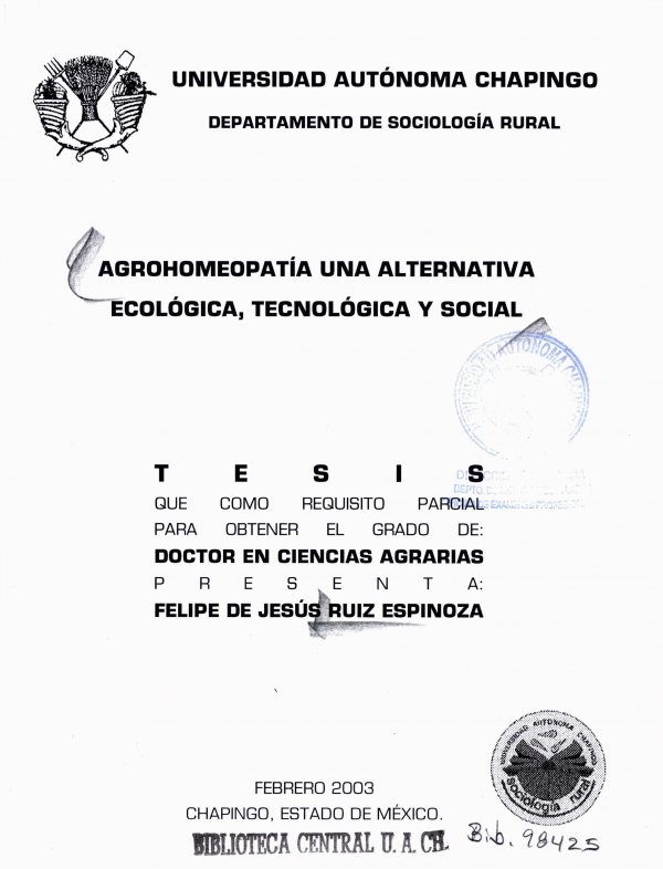 Agrohomepatía una alternativa ecológica, Tecnológica y social /por Felipe de Jesús Ruiz Espinoza by