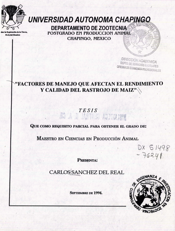 Dissertation note: Tesis (M.C. Esp. en Nutrición de Rumiantes) -- UACH. Departamento de Zootecnia. Coordinación de Postgrado
