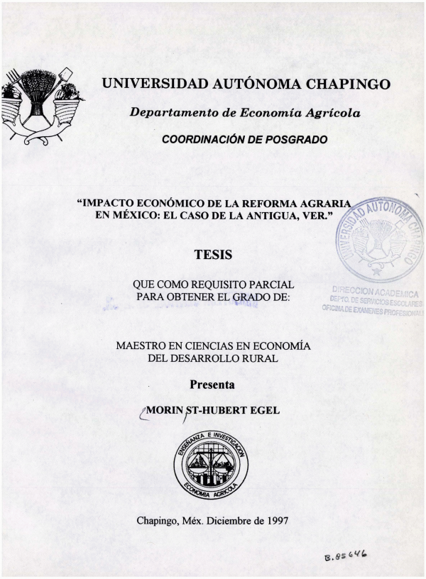 Publication details: Chapingo, Méx. ; UACH. Departamento de Sociología Rural, 1996