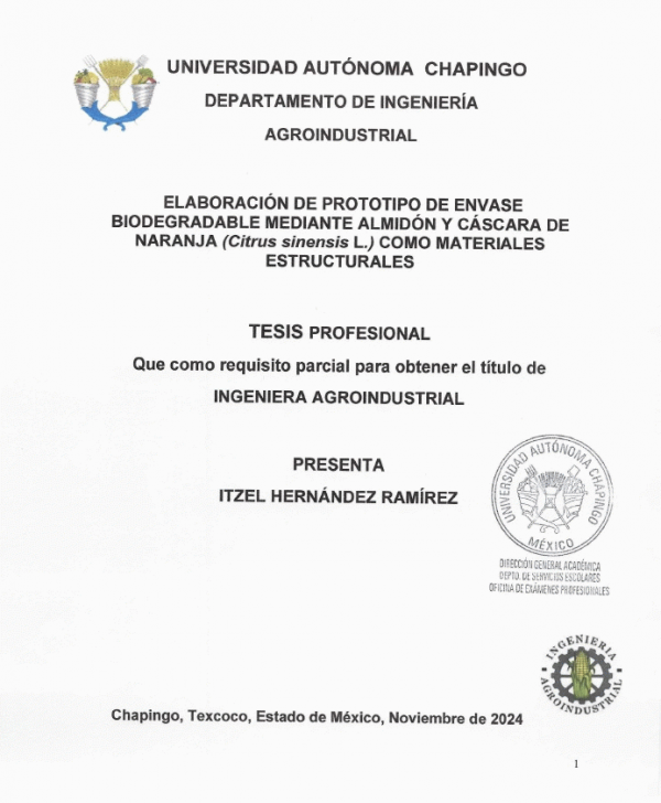Dissertation note: Tesis (Ingeniero Agroindustrial) -- Departamento de Ingeniería Agroindustrial, 2024 Licenciatura