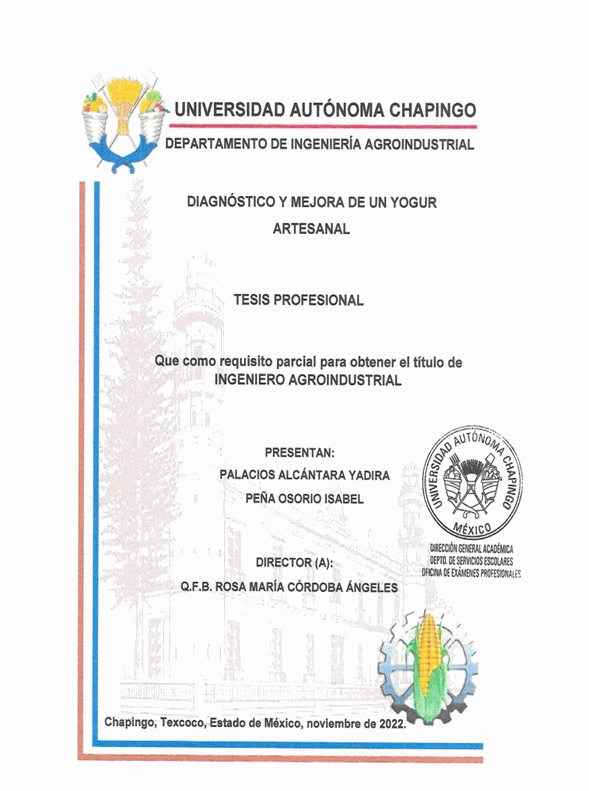 Diagnóstico y mejora de un yogur artesanal / Yadira Palacios Alcántara y Isabel Peña Osorio by