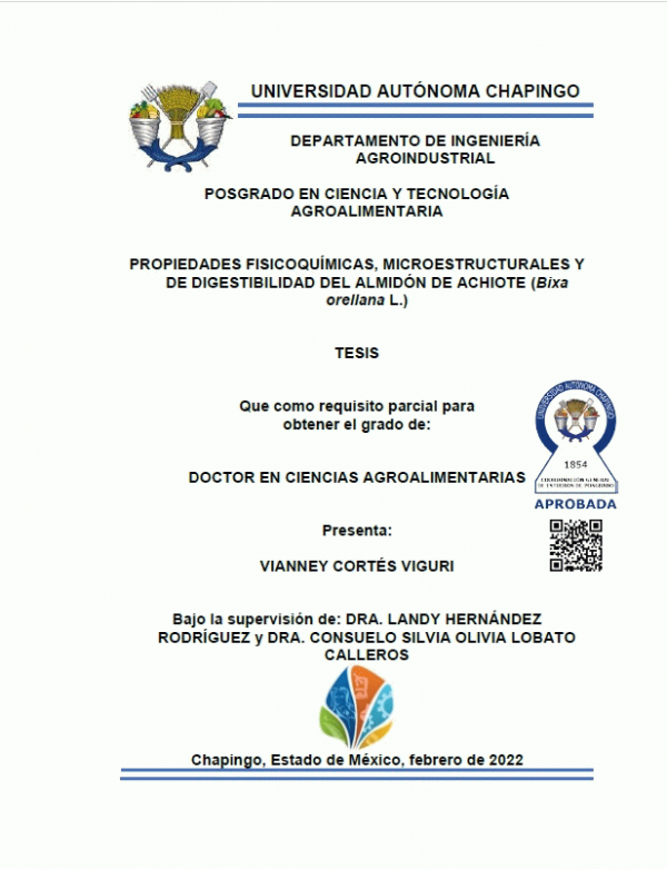 Dissertation note: Tesis (Doctor en Ciencias Agroalimentarias) -- Departamento de Ingeniería Agroindustrial, 2022 Doctorado