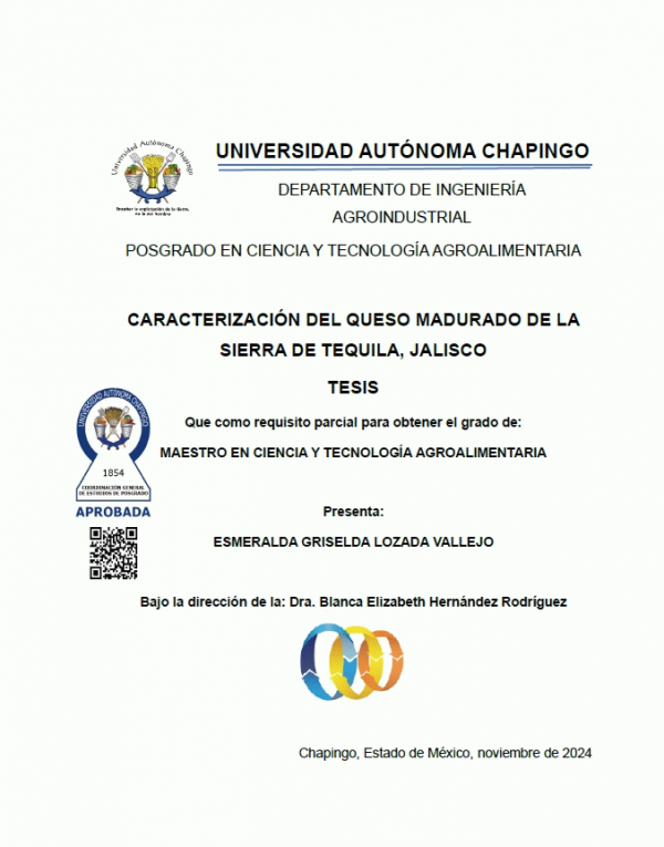 Caracterización del queso madurado de la sierra de Tequila, Jalisco / Esmeralda Griselda Lozada Vallejo by